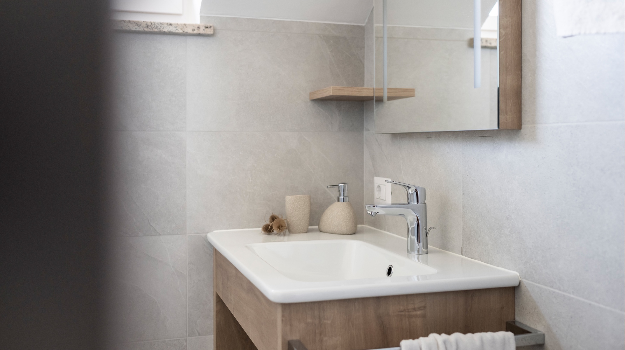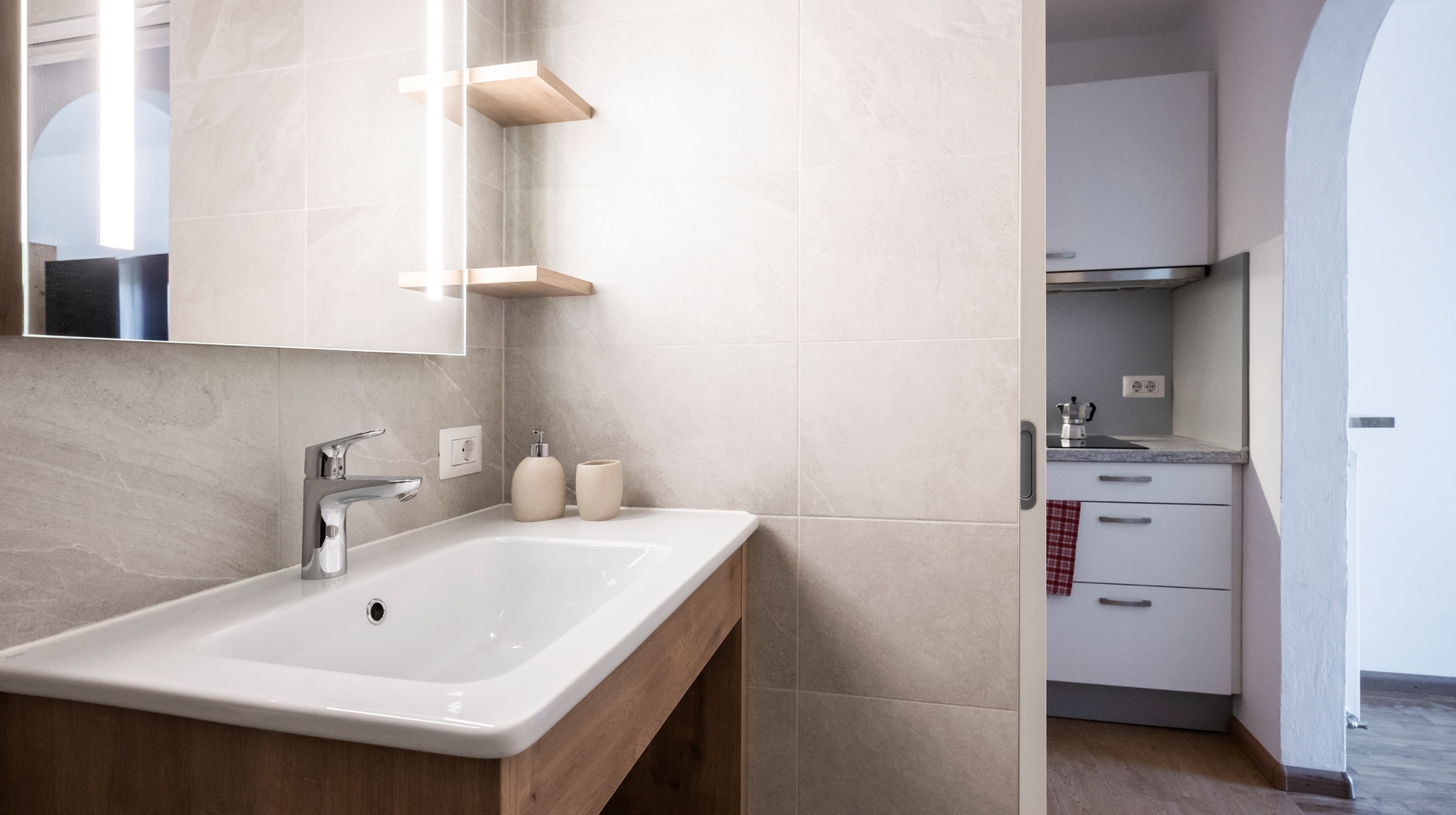 Like the thyme plant itself, this cozy apartment offers pleasant moments of well-being. Bedroom, bathroom, and kitchen-living room are friendly and bright and leave no wishes unfulfilled with extensive features for couples or families. You will even have the choice between a balcony on the south side with lots of sun and a view of the mountains or a balcony on the north side with a refreshing view of the woods for relaxing hours in the evening sun.